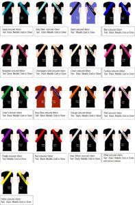 If you order early enough in the day then we can usually post the same today. Couple this with a choice of Special Delivery and you can get a guaranteed Next Day delivery. Just select the colour of the ribbon that you require and let us know the wording you require on the front of the sashes. There is an optimum area for the text to be visible. We do not charge per letter or per word. So you can have as much text on the sash as you wish. Realistically we can only print up to 2 lines of text on the sash. So the more text you have – the smaller it will be.