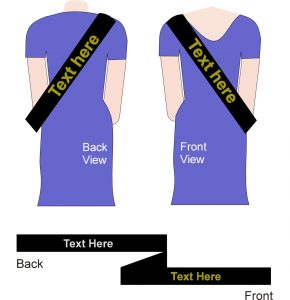 The optimum viewing area for any text, on either the front or back of the sash is approx 50cm.